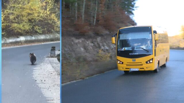 "Това никога не се е случвало": Мече изскочи пред училищен автобус във Велинградско (ВИДЕО)